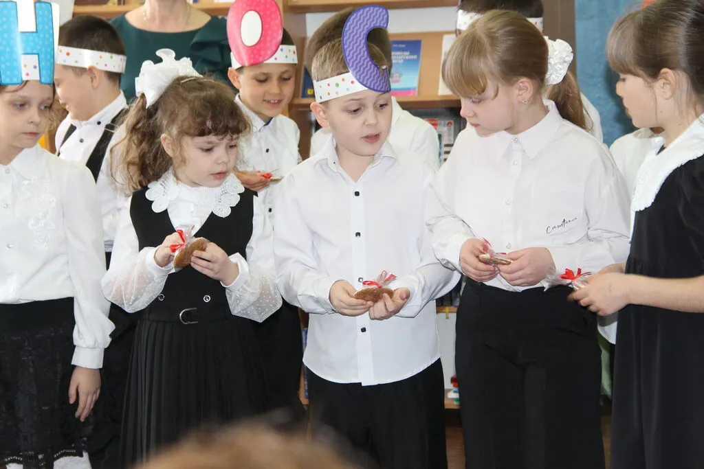 Сегодня учащиеся 1 «В» класса МАОУСОШ № 2 им. Ю. Гагарина в Успенской поселенческой детской библиотеке показали всё, чему научились за три четверти учёбы в первом классе.